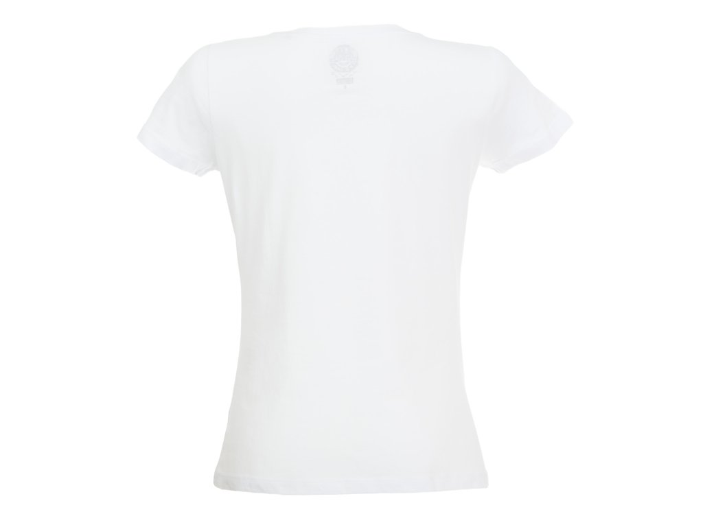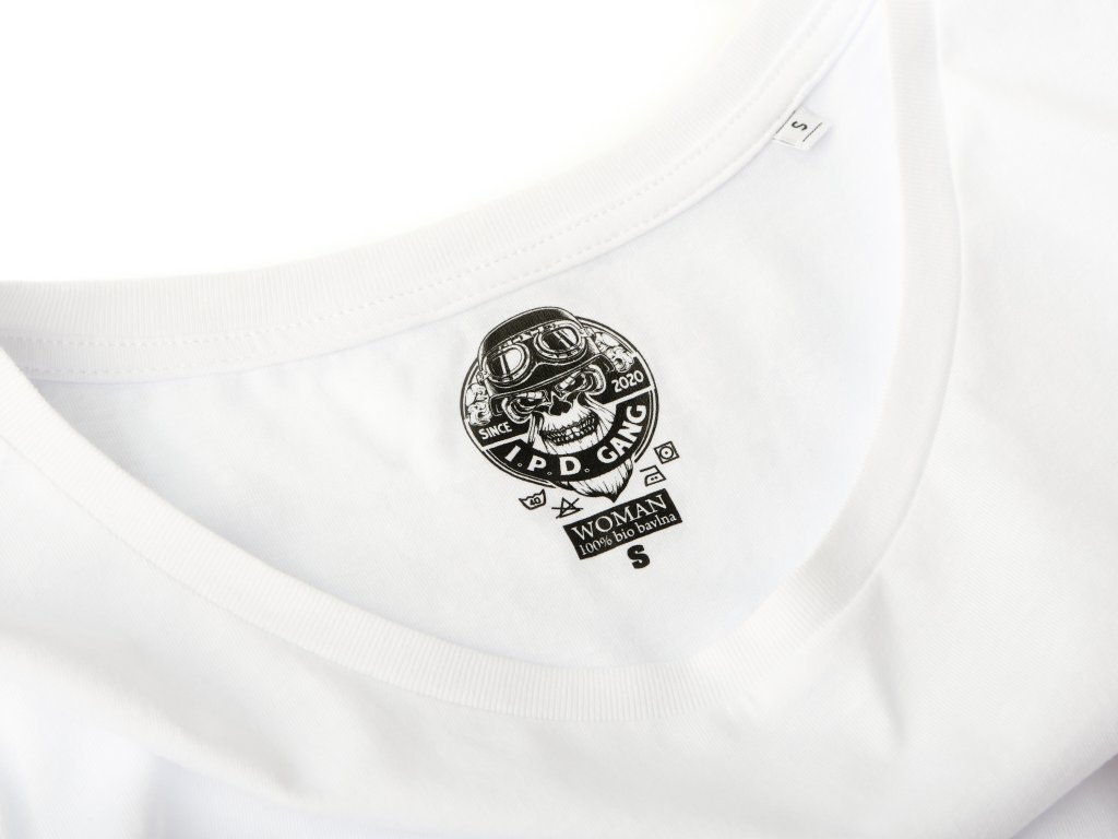 Dámské tričko z bio bavlny. Vypasovaný střih, úzký kulatý výstřih v žebrovaném úpletu, souvislá lemovka kolem krku a na ramenou.